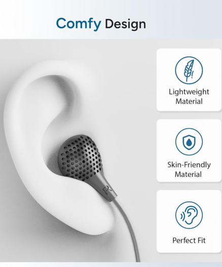Wired Earphones with Mic | 3.5Mm Audio Jack | 14Mm Driver for HD Sound & Deep Bass