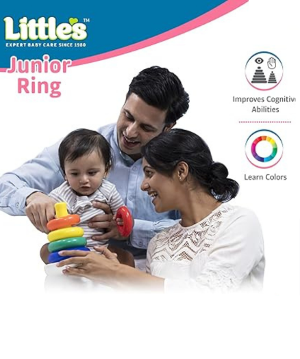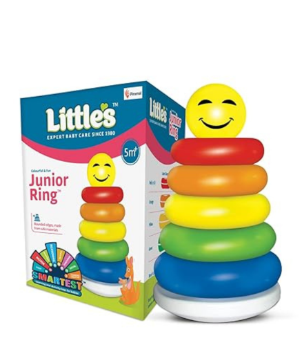 - Little's junior ring is an attractive educational toy which helps your baby recognize different colours and sizes while having fun stacking them in order