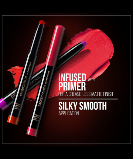 - 9 HR HD FINISH: FACESCANADA Ultime Pro Hd Intense Matte Lips + Primer stays put on your lips for 9 hours straight. The super long-lasting matte lipstick keeps you looking gorgeous throughout the day.