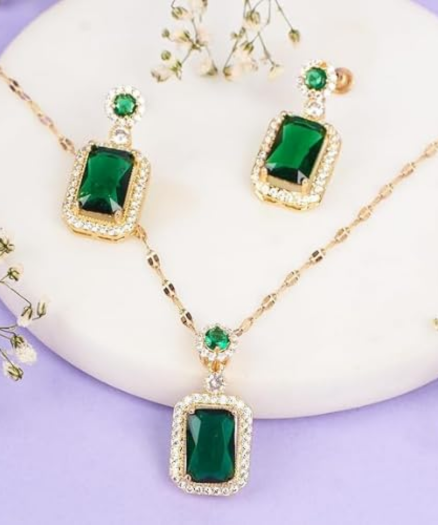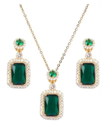 Trendzuri Elegant Emerald Green Pendant Necklace And Earnings