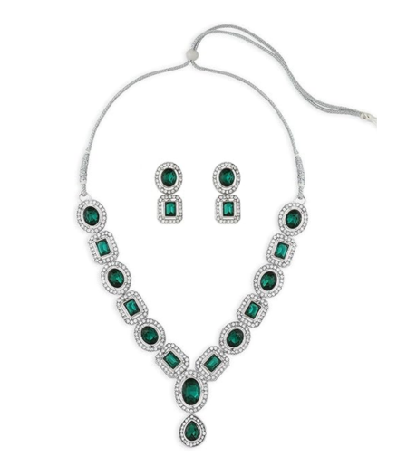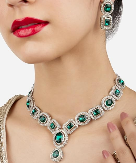 ZAVERI PEARLS Green Diamonds Embellished Necklace & Earring