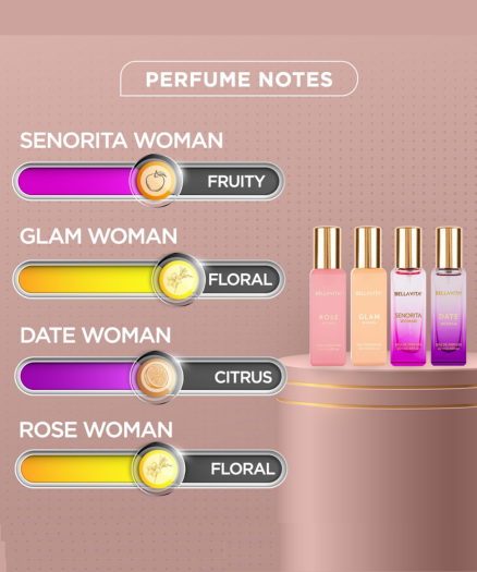 Discover the best perfumes for Women with the Bella Vita Luxury Perfume Gift Set for Women. A set of 4 miniatures, arousing your olfactive experience right from fruity, floral through to Oriental Woody and sweet Oud, wear a different scent every day, perfect for all your moods. This set contains : ROSE Woman, GLAM Woman, DATE Woman and SENORITA Woman.