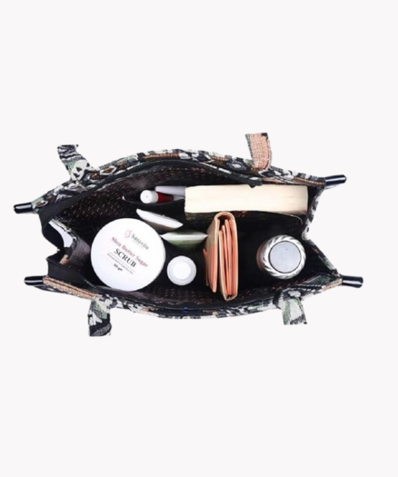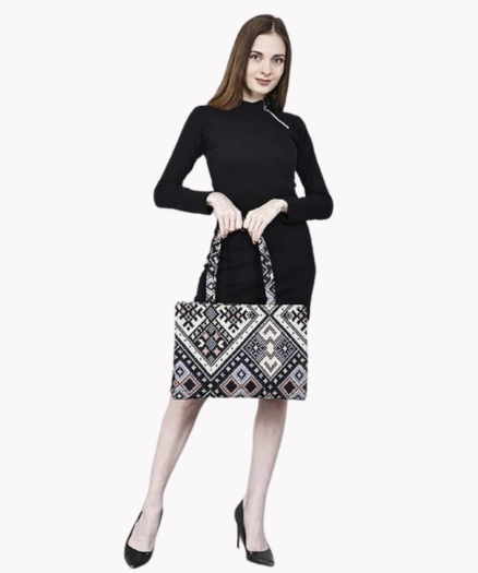 - Durable and eco-friendly, this tote bag is handcrafted by skillful local artisans. The multipurpose tote bag with traditional patterns has a smooth zipper to easily enclose everything within the bag.