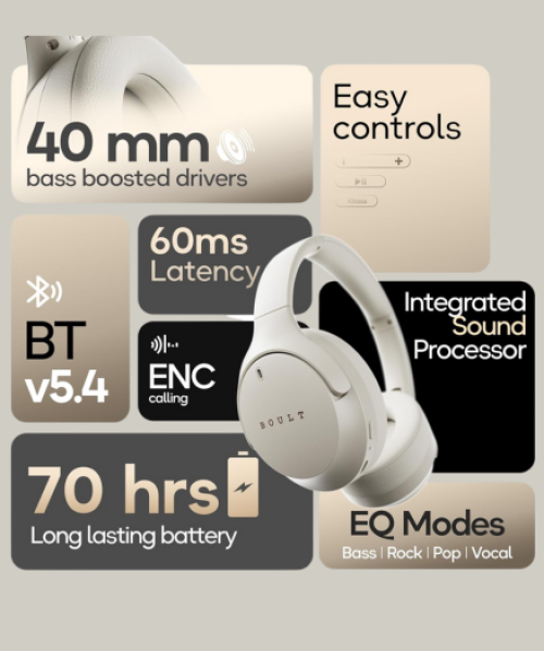 Q Over Ear Bluetooth Headphones with 70H Playtime, 40mm Bass Drivers, Zen™ ENC Mic, Type-C Fast Charging, 4 EQ Modes