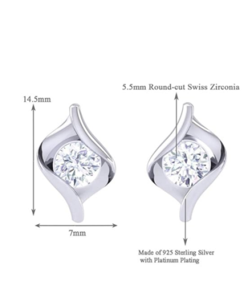 CLARA Made with Swiss Zirconia 925 Sterling Silver Platinum Plated Mia Solitaire Earring