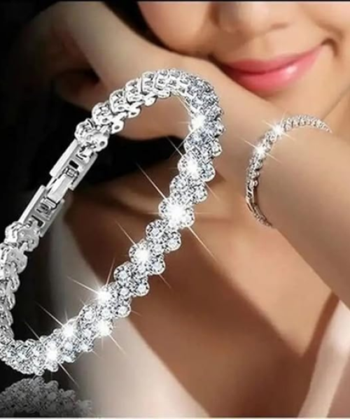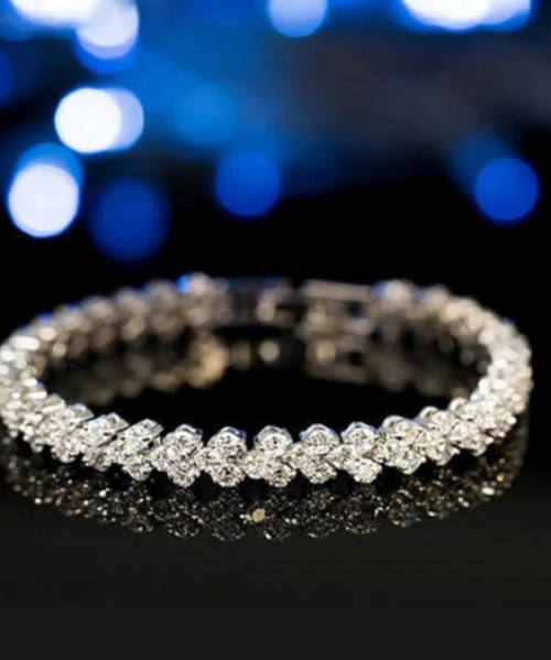- Stylish Platinum Plated Crystal Bracelet for Women and Girls