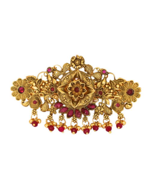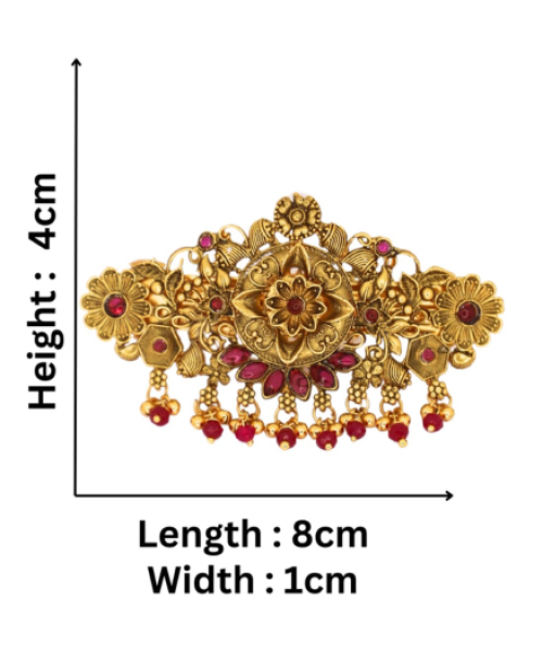 Traditional Gold-Plated Hair Barrette Clip with Floral Design and beads Danglers