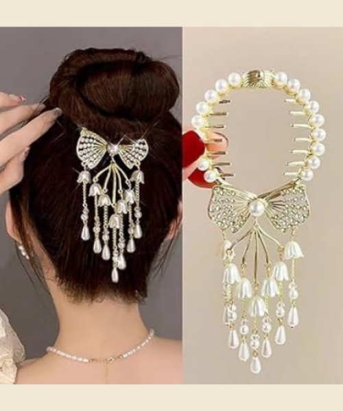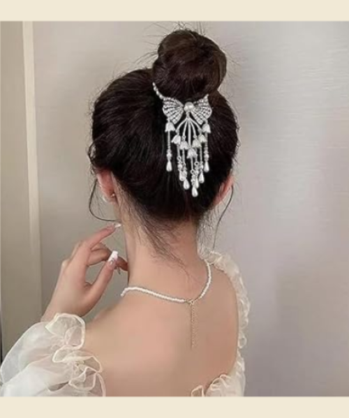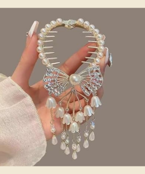 - Flower Pearl Hair Clip accessories for girls are easy to use, you just need to follow the usual way to tie up your hair into a bun, and then wrap the hair pin around your bun, last buckle the back button, which are easy and convenient for you to decorate.