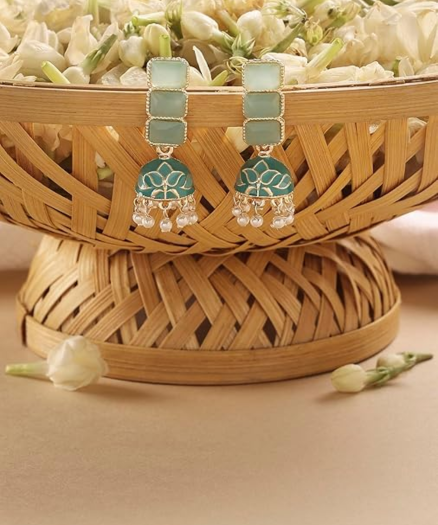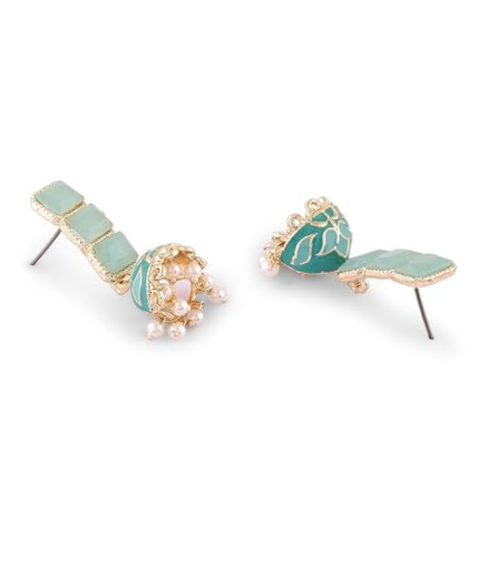 Zaveri Pearls Mint Green Enamel Ethnic Style Jhumki Earring