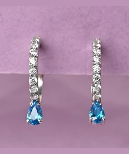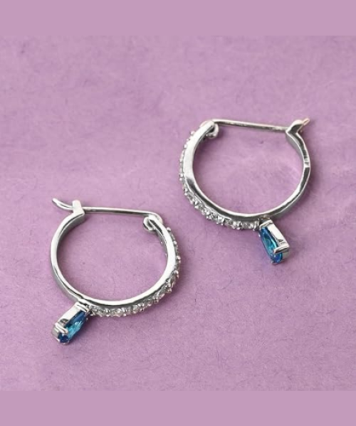 CLARA 925 Sterling Silver Sky Blue Hoop Bali Earrings