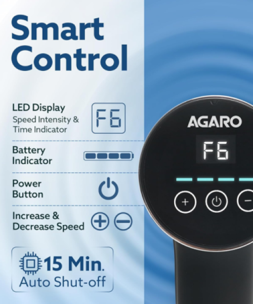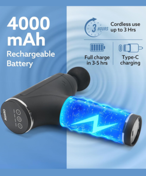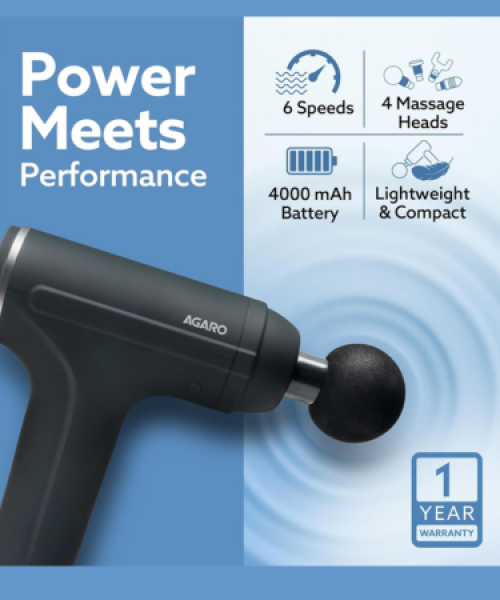 AGARO Galaxy Gun Massager, 4 Heads, 6 Speed, Rechargeable, Handheld, Percussion Muscle Massager for Full Body Pain Relief