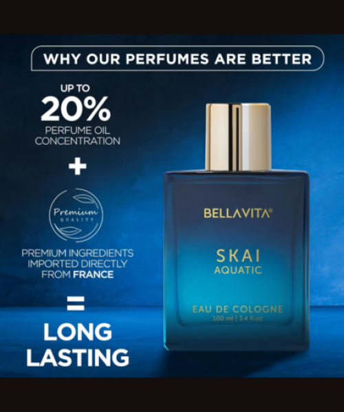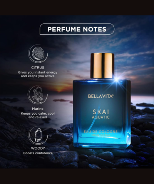 - SKAI Aquatic Eau De Cologne offers all-day freshness with a subtle yet charming scent for every occasion.