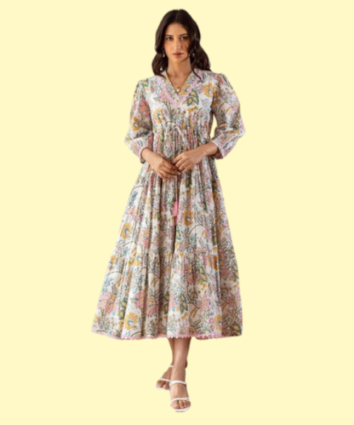 - Soft Rayon Blend Fabric: Crafted from a premium soft rayon blend, this one-piece dress for women features a stylish floral print, ideal as a beach dress for women.