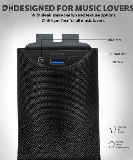 - The exterior is wrapped in a high-density, woven fabric mesh that provides a tactile grip and helps protect the internal drivers while allowing sound to pass through clearly.