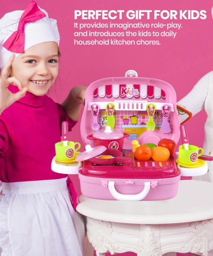 lastic DIY Kitchen Set with Briefcase and Accessories for Kids (Pink)