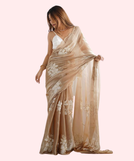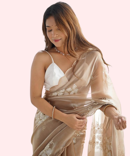 Saree Fabric: Shimmer Chiffon | Blouse Fabric: Shimmer Chiffon | Work:: Saree: Sequence Embroidery | Blouse: Sequins Embroidery