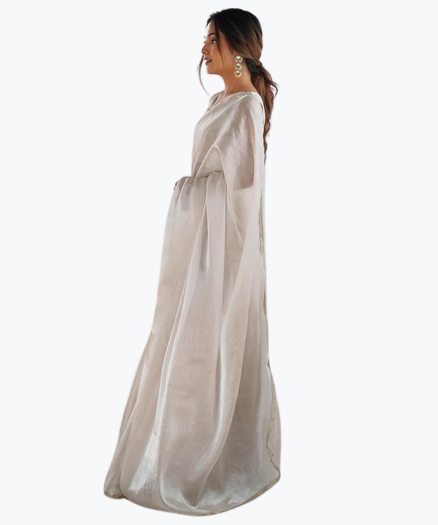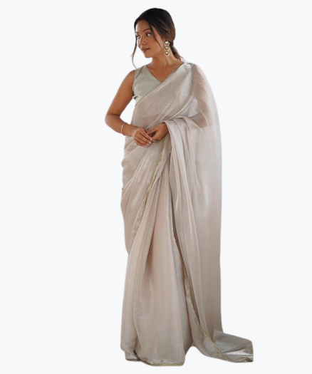 Saree Details : Saree Fabric: Shimmer Chiffon | Blouse Fabric: Shimmer Chiffon | Saree Work: Lace Border | Blouse Work: Top Dyed | Saree Color: Beige | Blouse Color: Beige