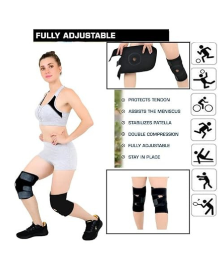 ✅ UNIVERSAL SIZE: Our knee support brace come with three adjustable straps which wrap comfortably around almost all adult knee sizes. The adjustable knee caps for women circumference varies from 12” to 18” and you can choose the tightness and grip you want as per your comfort level and your intended activity. The maximum comfort provided by our knee caps make them suitable for continuous usage by both men and women.